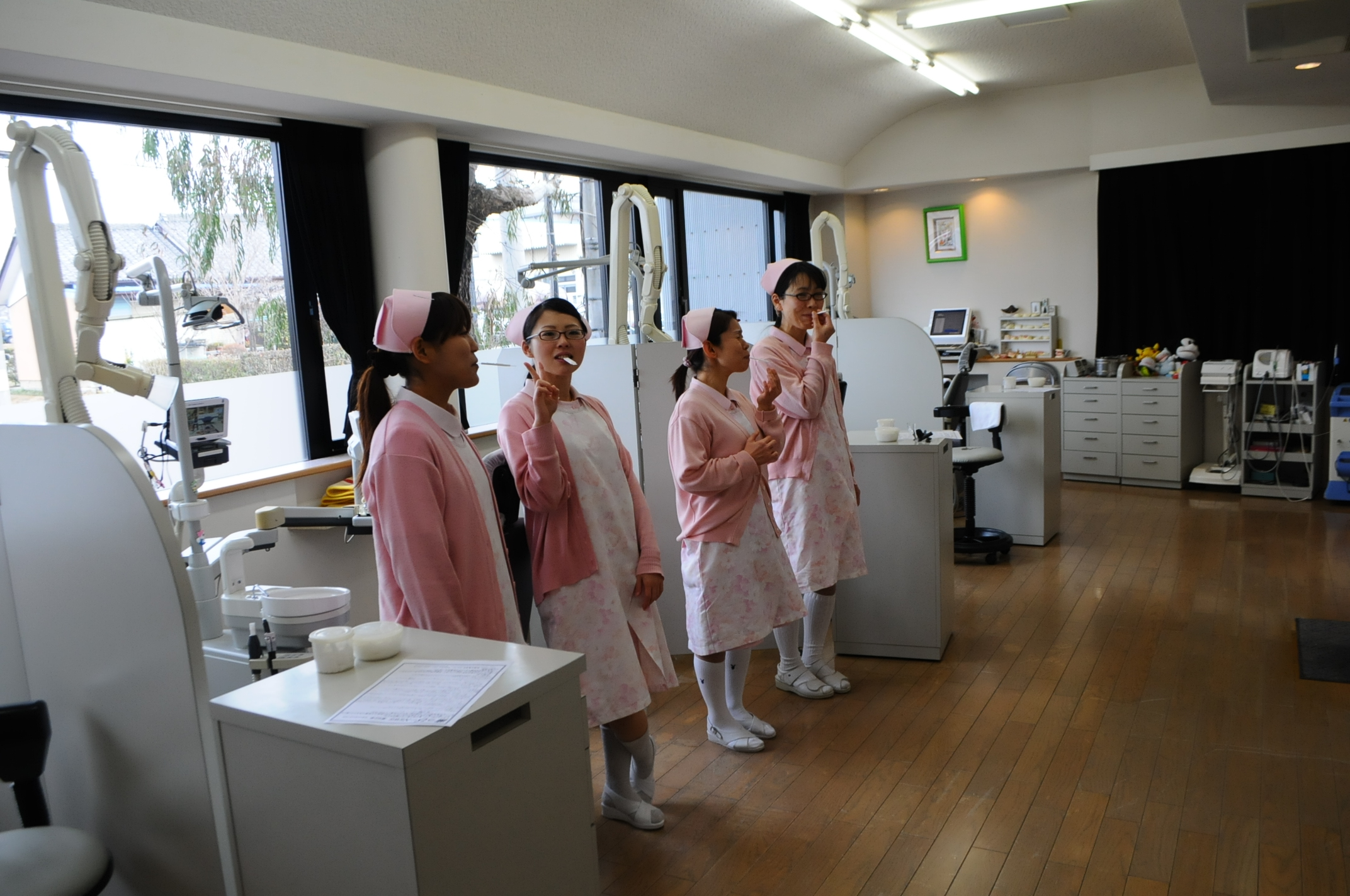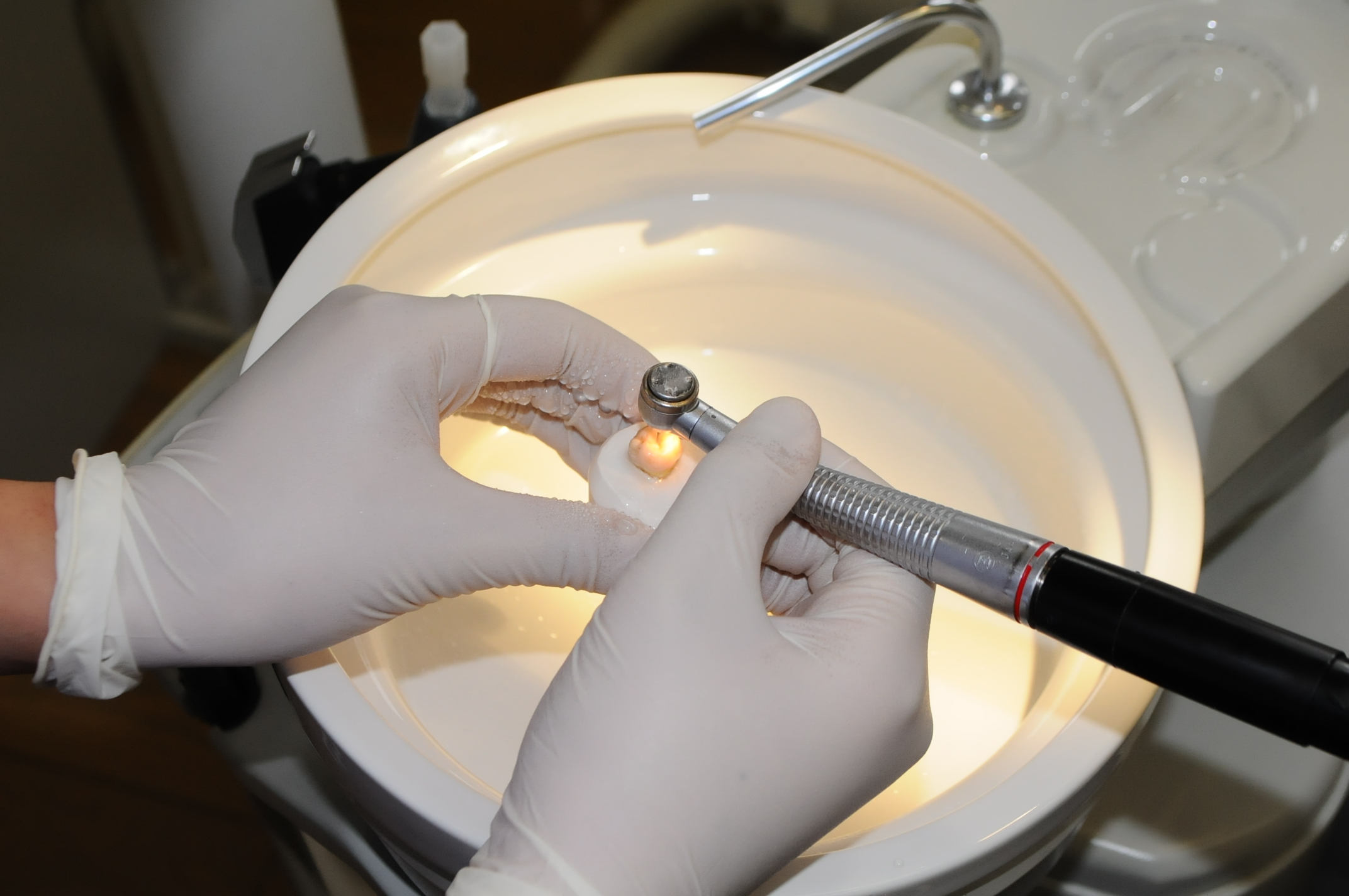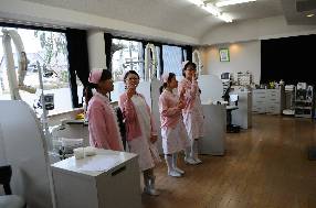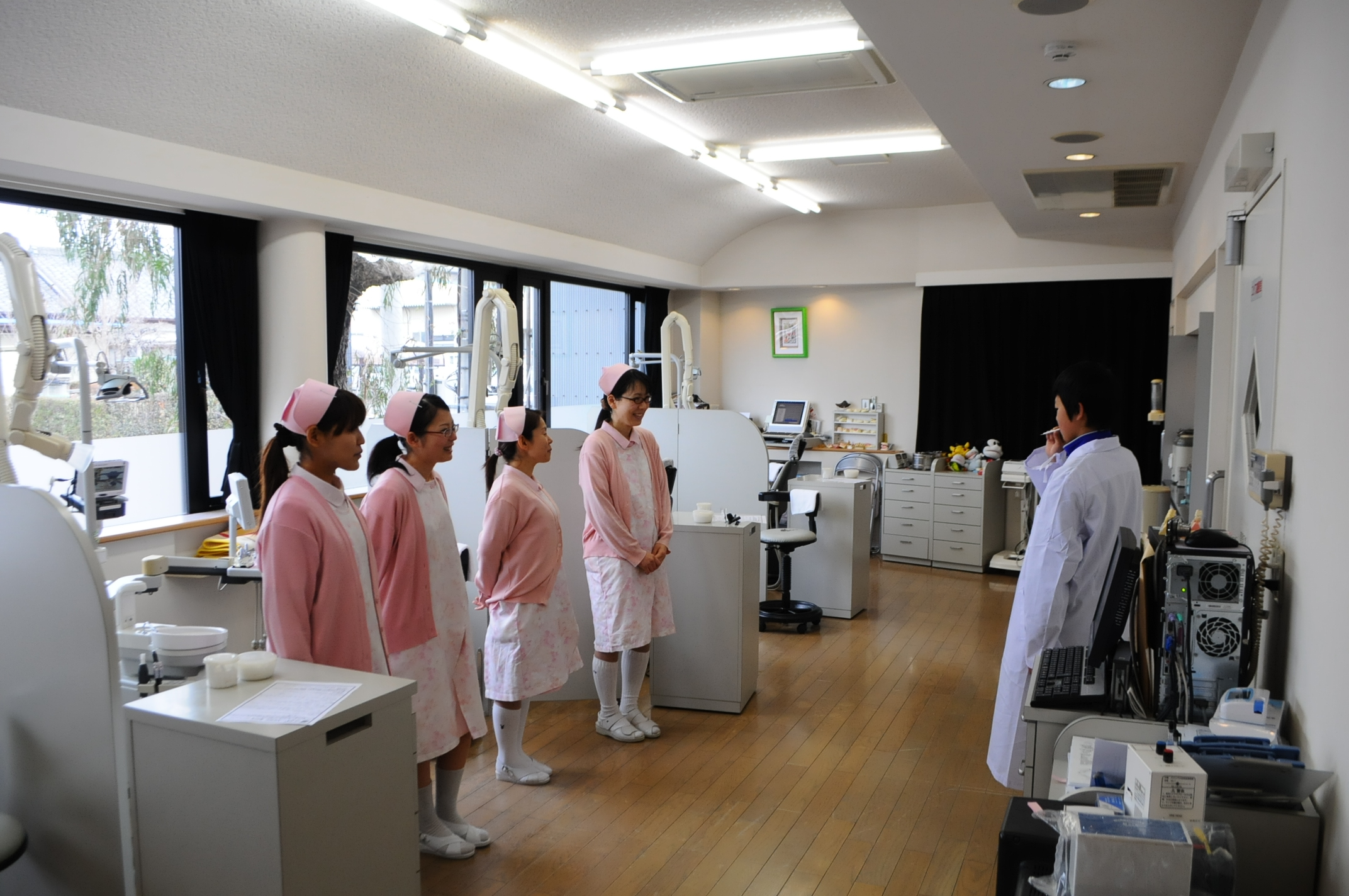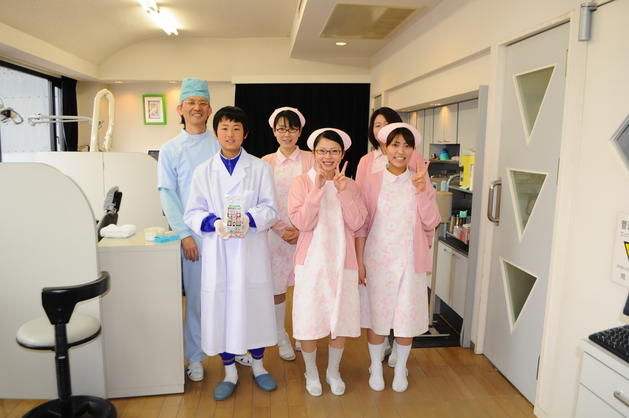 一人でだけ配置され、初日は緊張気味でしたが、最後は笑顔で、削合充填体験してもらいました。