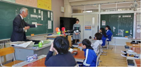 | 4月14日(金)に、群馬県警察本部及び吾妻警察署の署員さん、駐在さん、交通指導員さんの4名を講師にお迎えして、交通安全教室を実施しました。 全校で道路の歩き方や横断歩道の渡り方、信号の見方などについてお話ししていただきました。その後1・2年生は横断歩道を渡ったり、道路を歩いたりする練習をしました。 |