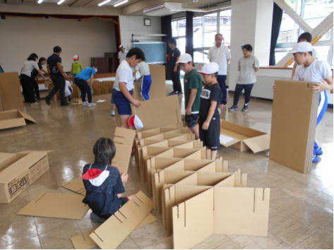| 5月29日(月)の2・3校時に、ビエンナーレ特別授業を行いました。 ビエンナーレの作家さんを招いて、全校で張り子作りを行いました。作家さんの説明を聞いてから作品作りを行いました。2時間を使って、楽しく作品を仕上げることができました。 |