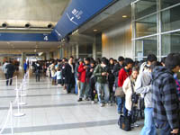 7時半を回り、寒い外から少し暖かい会場内の通路に並びました。この状態で2時間半、朝の10時まで待機です。東京ゲームショウと違い、混んできたから30分繰り上げて開場…って事はありません。