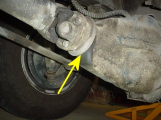 リア・デフ(プロペラシャフト接合部)フランジからギアオイル漏れがしている。 フランジ部のオイルシールが傷み、オイル漏れと同時に水の浸入が発生している。 |