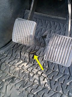クラッチペダルを伝わってフルードが垂れてくる。 クラッチマスターシリンダー内のパッキンが劣化し、フルード漏れとなる。 放置すれば、クラッチペダルがスカスカとなってクラッチが切れなくなる。 (または、つながらなくなる) ![]() |