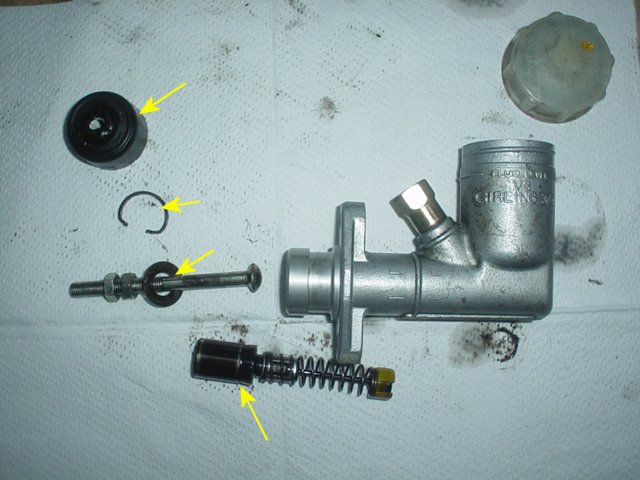 マスターシンダーのみならず、スレーブシリンダーも同様に、パッキンの 劣化によってフルード漏れを起こす。場所は、ギアボックス前方に付いている。 リペアキットの常備要。 マスターシリンダー内にピストンの擦れた様な痕が多方面で確認されている。 そもそも、製品加工と構造がよろしくない模様。 |